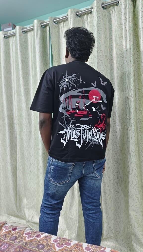 Inspired by the depth of Japanese folklore and crafted with modern minimal street luxury, this oversized tee blends art, craftsmanship, and attitude in one silhouette.